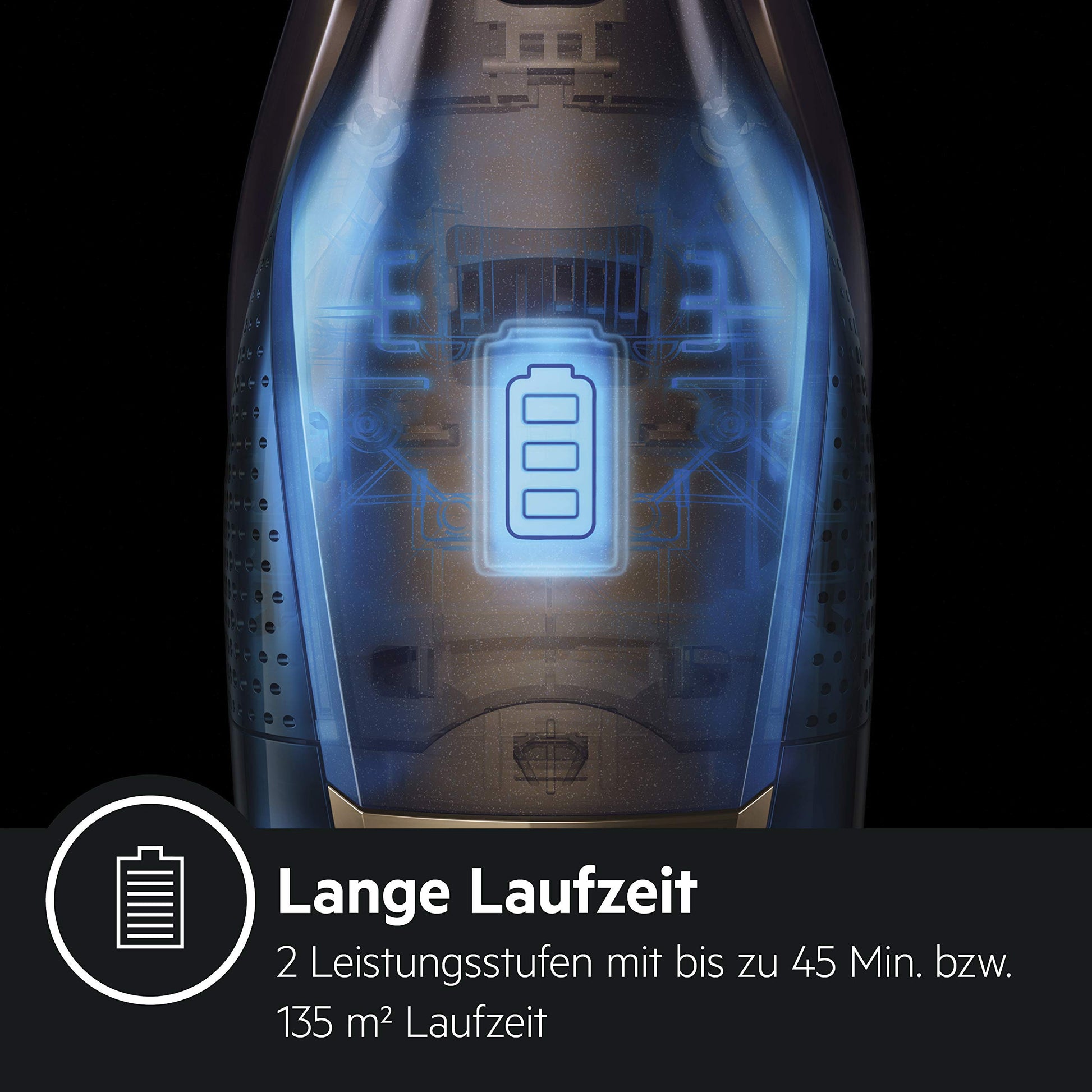 Lange Akkulaufzeit: Bis zu 45 Minuten im ECO-Modus (135 m²) oder 16 Minuten in Power-Stufe (48 m²) dank 18 V Lithium High-Density Akku.
