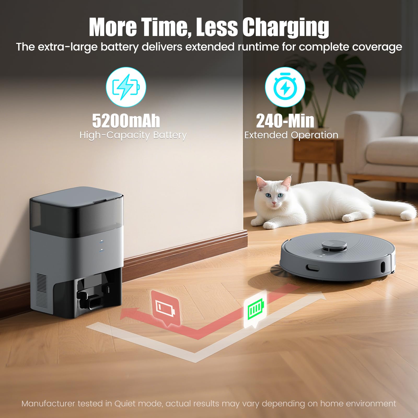 60 Tage freihändiges Reinigen: Die Absaugstation mit 3,5 L Staubbehälter leert automatisch den Schmutzbehälter und reduziert den Wartungsaufwand erheblich.
