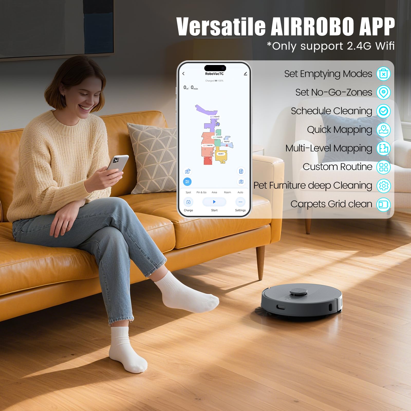 Der AIRROBO T25+ Saug- und Wischroboter kombiniert kraftvolle Reinigung, fortschrittliche Navigation und komfortable Selbstentleerung in einem Gerät. Ideal für Haustierbesitzer und große Wohnflächen, sorgt er für gründlich saubere Böden mit minimalem Aufwand.