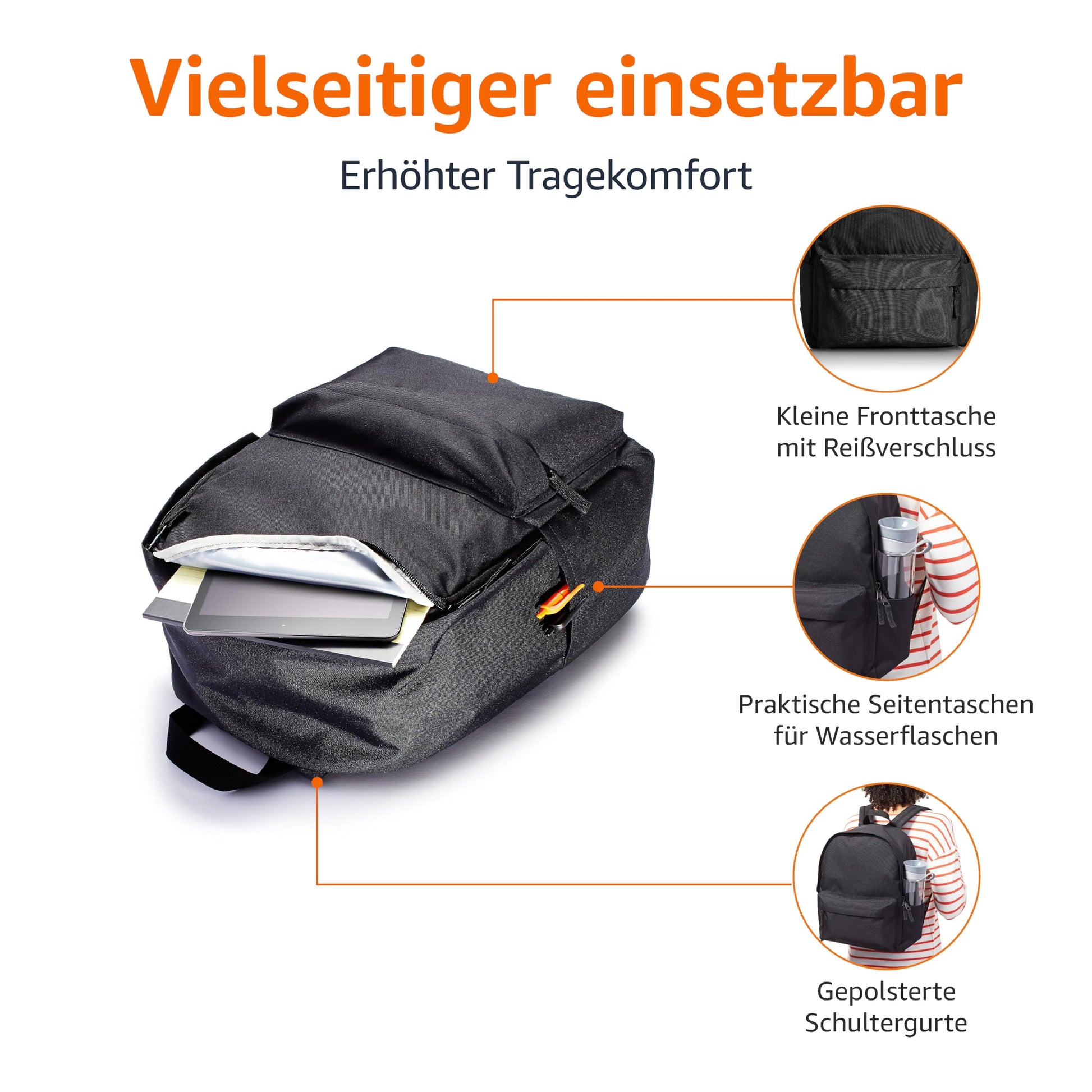 Klassischer Rucksack für Schule, Freizeit & Alltag – Schwarz