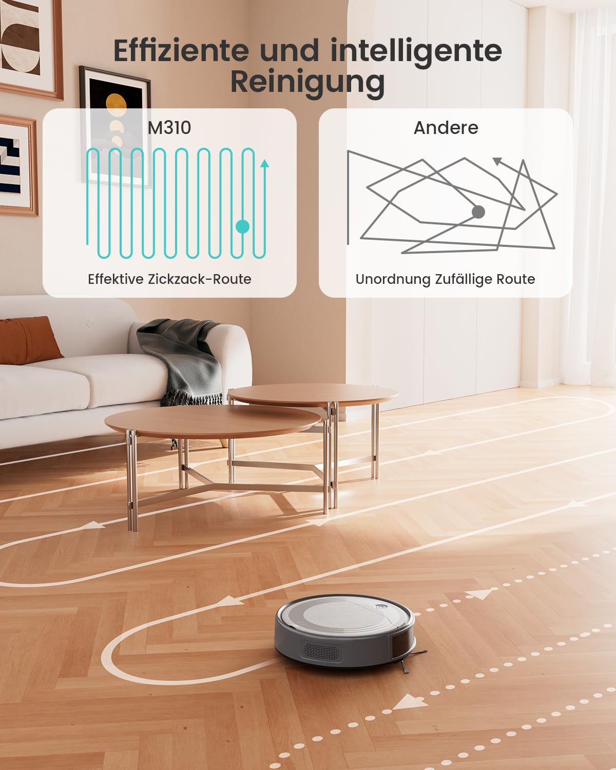 Der LEFANT M310G ist ein leistungsstarker Saugroboter, der Tierhaare, Staub und Schmutz zuverlässig von Teppichen und Hartböden entfernt. Mit präziser PSD-Navigation und smarten Funktionen sorgt er für gründliche Reinigung ohne ständige Kontrolle.