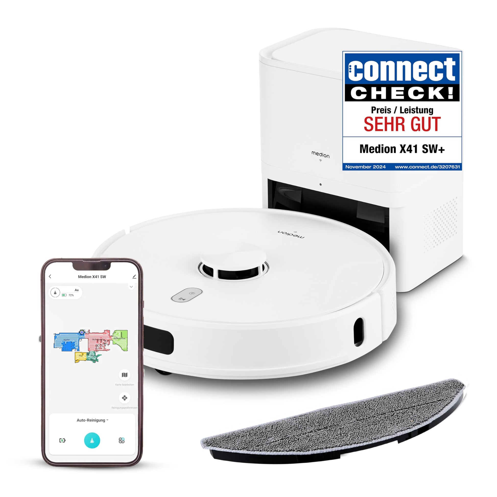 MEDION X41 SW+ Saug- und Wischroboter – 8.000 Pa, Auto-Entleerungsstation, Laser-Navigation