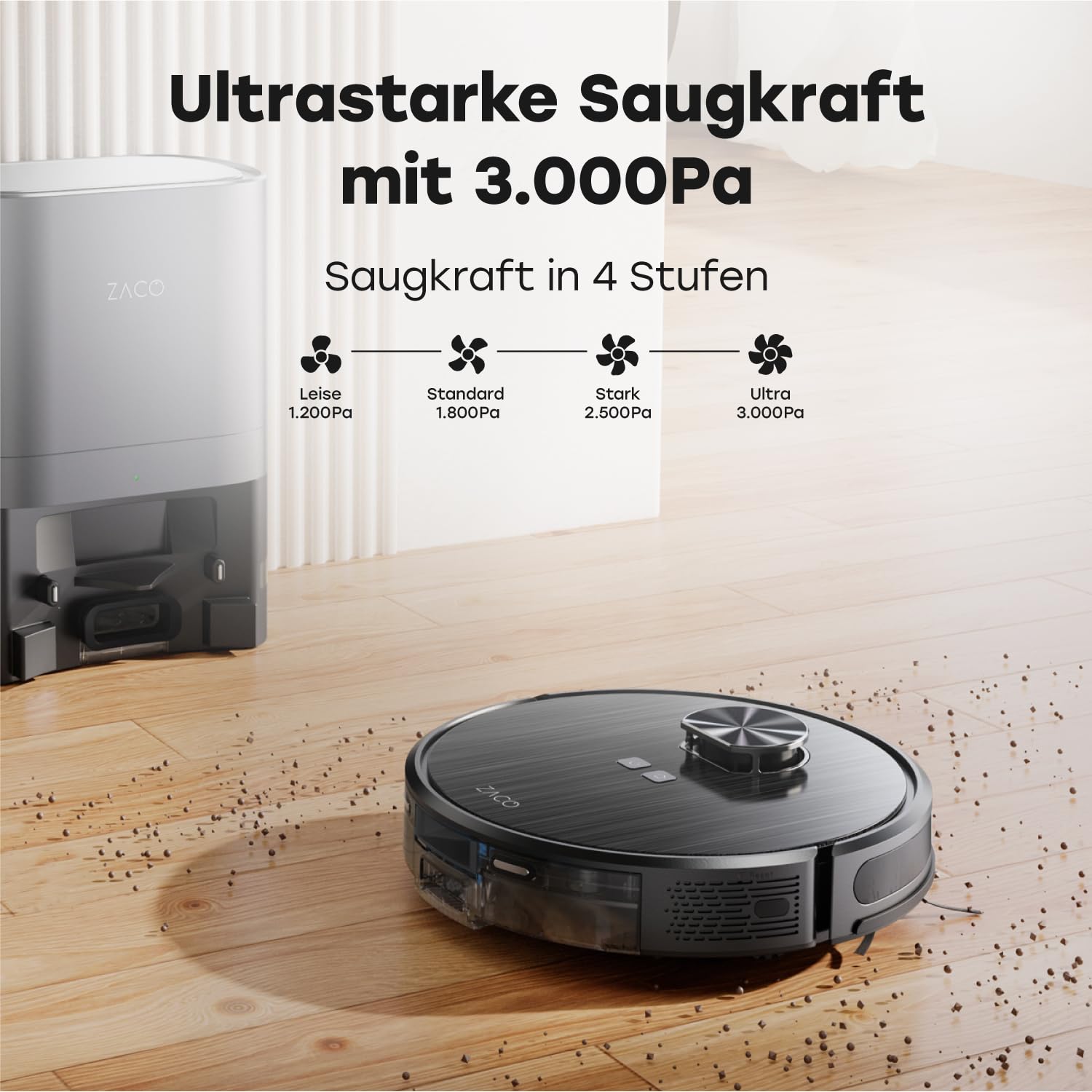 ZACO A10 Pro Saugroboter 2-in-1 – 3.000 Pa, Wischfunktion, 2,5 L Absaugstation, LiDAR, App & Alexa